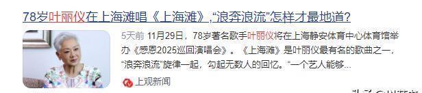 要说华语乐坛能一首歌“吃”一辈子的,叶丽仪绝对算一个。当年那首《上海滩》一出,“浪奔,浪流”的旋律响彻大江南北,只要前奏一响,谁的DNA都得狠狠动一下。可如今,这位叱咤风云的“歌坛猛将”已�岁了。